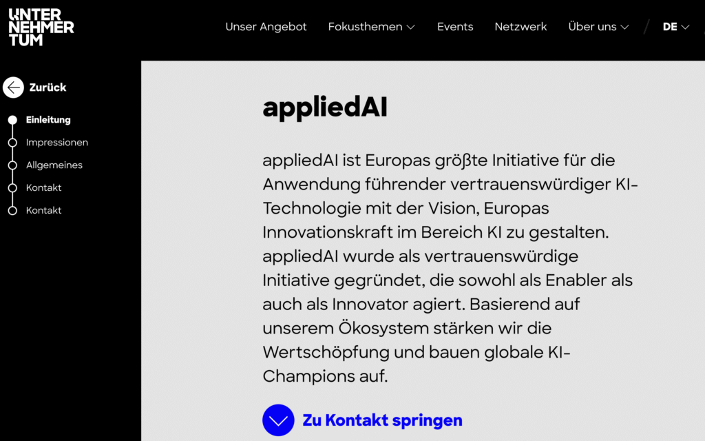 - Werfen wir zunächst einen kurzen Blick auf den nachfolgenden Screenshot, um zu erahnen, um wen oder was es sich bei der appliedAI Initiative handelt: