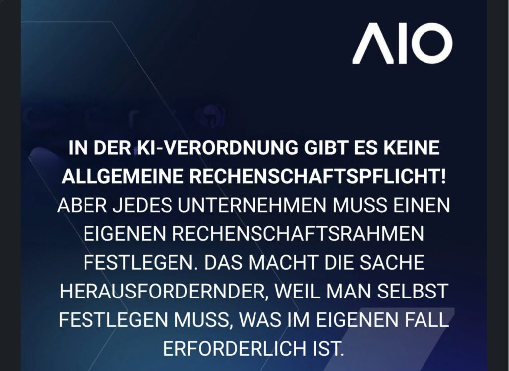 Infos zum EU AI Act gibt es viele. Zum „Goldstandard“ zählen die vielen frei zugänglichen Informationen von AIO auf LinkedIn. Dahinter stehen LLM Ben Hanssen und sein Team. AIO ist auch ein führender Anbieter von Zertifizierungen zum „AI Officer“.